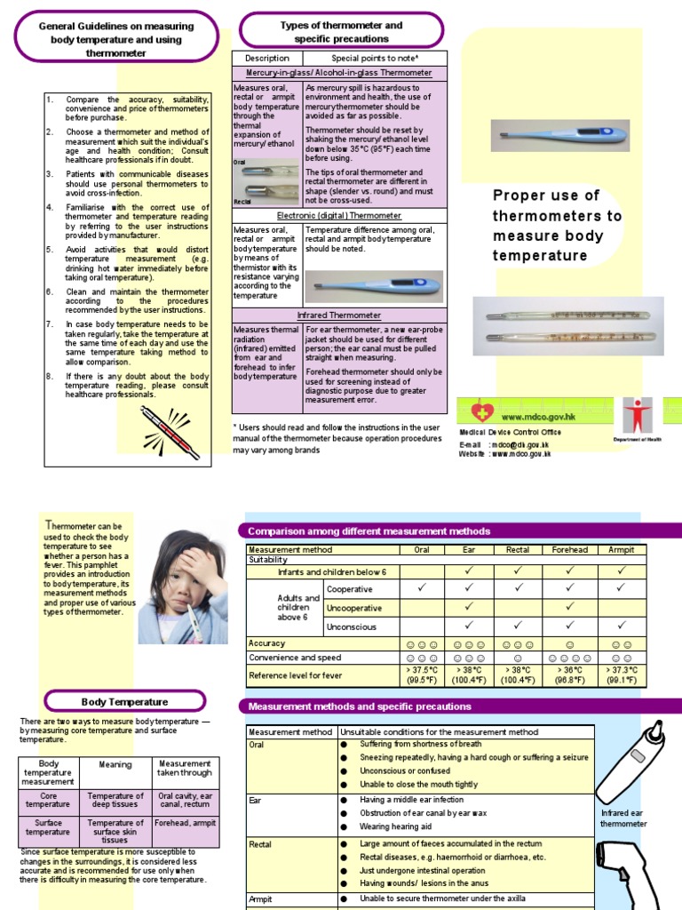 Different methods of body temperature measurement. There are different ways to measure the temperature of our body. Temperature control thermoregulation is part of a homeostatic mechanism that keeps the organism at optimum operating temperature as the temperature affects the rate of chemical reactionsin humans the average internal temperature is 370 c 986 f though it varies around this point by 05 to 1 c. The different methods of temperature measurement are. The normal axillary temperature range is approximately between 347 c and 373 c. The average normal oral temperature is 986f 37c. Mercury in glass thermometers.